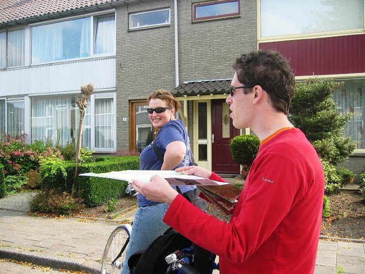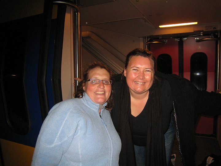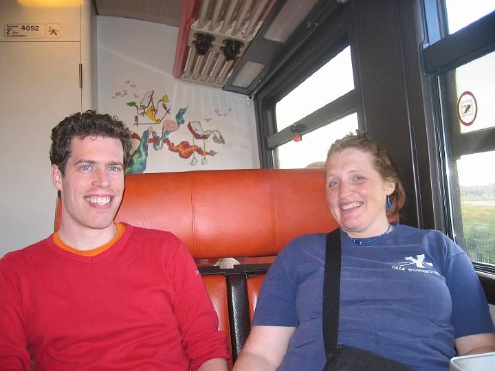 After the ride we fetched her luggage and took her to the train station to begin her 4 hour journey to Paris. Being the great hosts that we are, we even helped her on the train with her luggage. But we cut things a little too fine and just missed getting off the train in time. Luckily the first leg was an intercity to Rotterdam, with a stop in Gouda, a mere 20 minutes away. Ivo went and found the conductor and explained the situation and was told to come back and wait for him to make his rounds. Luckily when he did so, he was quite nice and didn’t make us pay for the ticket, let alone fine us €45 each, which would have been his right. He even told us to not bother paying for the ride back from Gouda and to tell the other conductor he’d OK’d it. Luckily we didn’t get checked on that leg because the conductor was on the other half of the train so we didn’t have to test whether that would work. Here we are on the train (photo by PR).