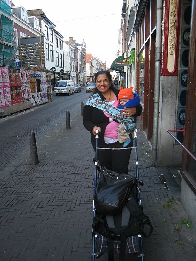 On November 5, we got to see our friends C (Australian) and M (Dutch) and their adorable 6 month old son who live in Vancouver but are in The Hague while M does a course for his job. C and I spent the afternoon wandering around the city, lunching, putatively shopping and generally being ladies of leisure while our husbands worked. We went and checked out somewhere I’d like to live – here’s C on that street – the potential apartment is behind the scaffolding, not hopeful for a quick move-in.