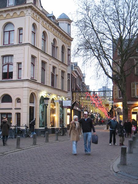 We had a flying visit from my friend Fiona and her boyfriend and sister. We got to hang out with them a bit last night and tonight, but they spent the day going to an Ajax vs Den Haag football (soccer game). Quite the experience really – because of fighting, you have to have a fan card to buy a ticket to games, and for contentious games such as this one each fan can buy only one. Supporters are bussed or trained in on special busses/trains, and they’re segregated from each other at the stadium, with separate entrances and everything. Even this wasn’t enough, and Den Haag agreed to not even come to away games for a few years, so half the stadium was empty! Crazy. So the only way Fiona et al could see the game was to buy a tour package for a tour of the whole facility starting at 8:15 am – it did include a lunch of sorts as well. After the game, we tried to wander around Utrecht for a bit, but it was very cold and Liam hadn’t been having a good day anyway – his molars are coming in, and he got to a point where he was just uncontrollably crying, so dinner had to be skipped in favour of takeout and we had to scurry home, where we did manage to have a nice evening and calm Liam down before the tired football fans headed to bed. They’re leaving really, really early in the morning in order to get to Paris by 11 am (!). So, no pictures of the visitors, just one of the still lighted centre. It sure does make it look pretty.