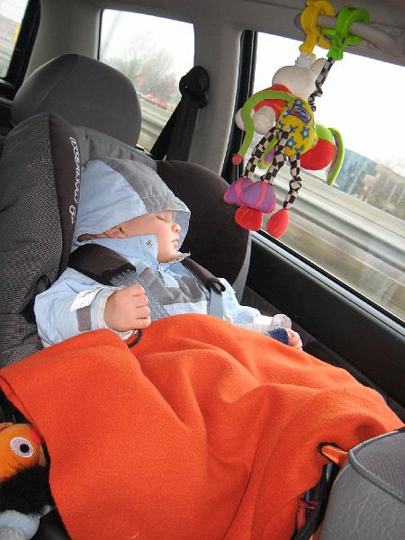 Here’s Liam asleep in the car in his new seat. We try to time travel to coincide with nap time, though he likes the new seat a lot more since he can see things.