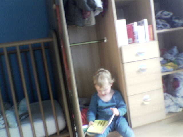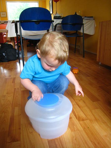 On his bike – he can’t really pedal it yet, but he likes to try.