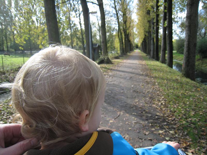 Anyway, the photos from the month. October dawned lovely and sunny. Here we’re biking home the long way from yet another trip to the kinderboederij.