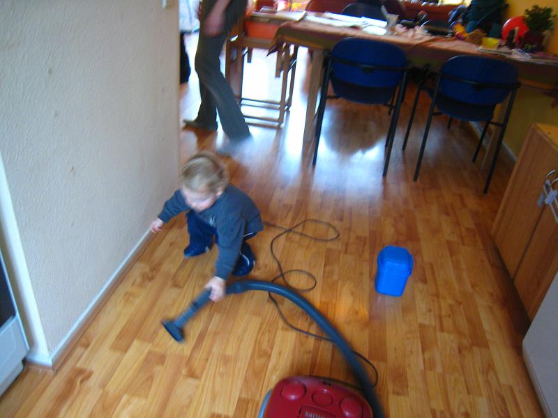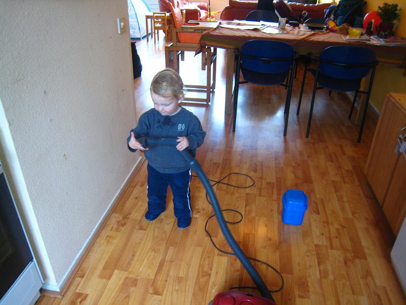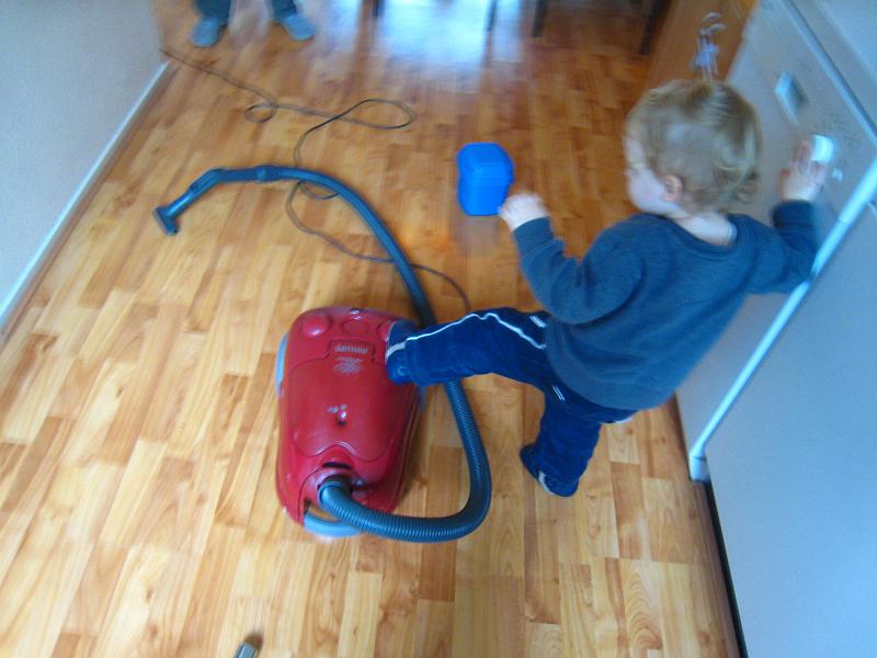Liam is still obsessed by the vacuum cleaner, and insists on helping every time it comes out. I actually have to be careful not to let him see it when I get the stroller out of the same closet.