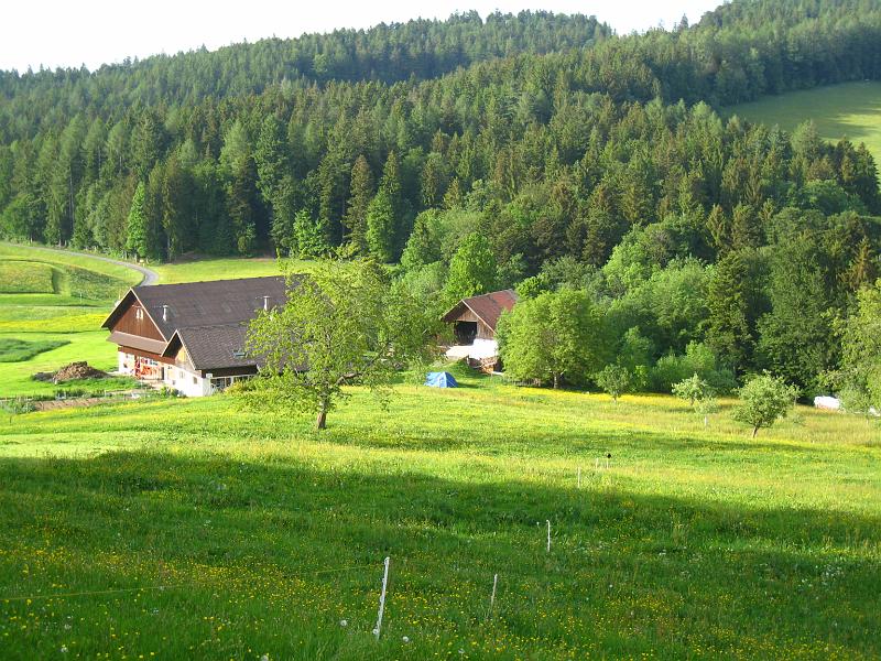 See that blue tent - that's us. A little closer to the house than I would have liked, but they hadn't mowed the orchard where they usually put people yet. In fact, if we hadn't called ahead, they wouldn't have mowed that bit either.