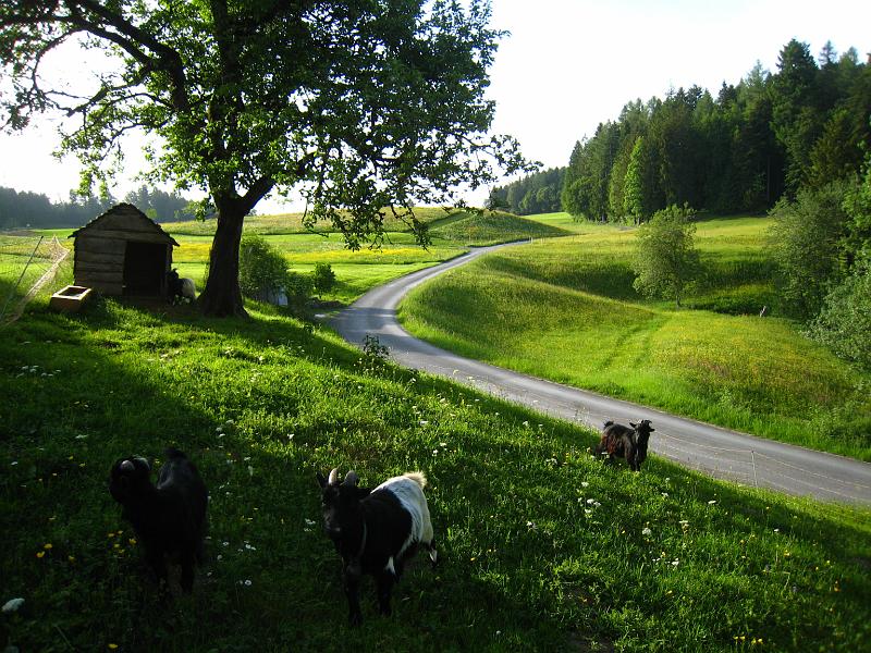 | The farm's goats by the side of the road. This is motorcycle heaven. |