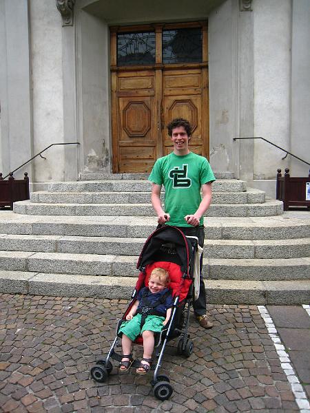 In front of the church.