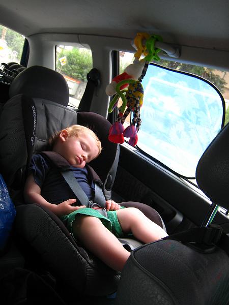 | Liam slept well in the car since it was finally cool. |