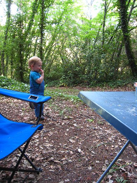 | Liam contemplates the environment. It was well-shaded - did miss the sun, but liked being cool. Only downside was mosquitoes, and they really, really like me. |