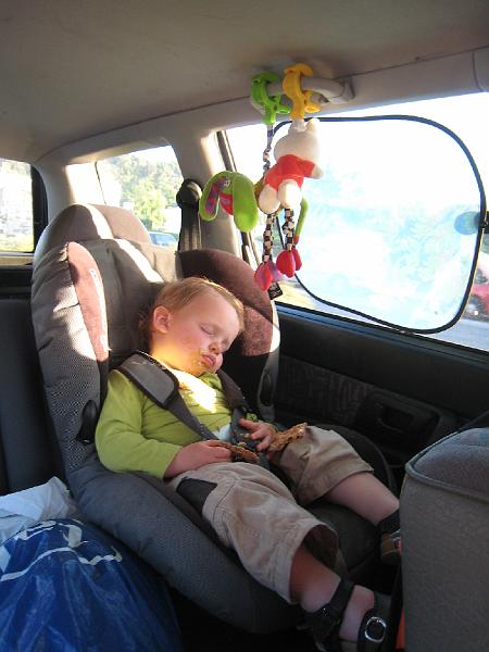 | Liam was exhausted and fell asleep covered in peanut butter. |