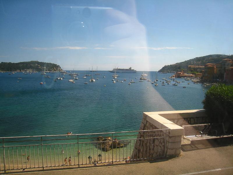 | Bay filled with sailboats, and a yacht out for a spin. |