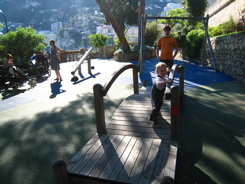 | I'd spotted this playground from the plaza. One level on the cliff down, beautifully maintained, the spongy ground stuff throughout. |