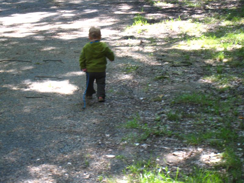 | While packing up on Sunday morning, Liam decided to take the bungee cord for a walk. |