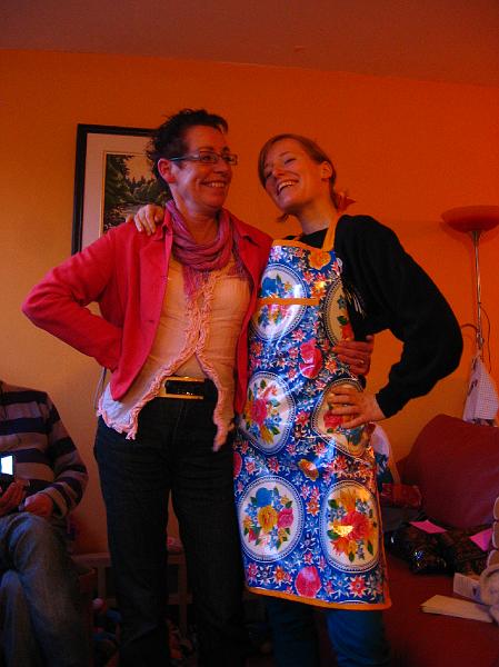 Marijke and Cyrille with her new apron that Nicky made for her (Cyrille's camera)