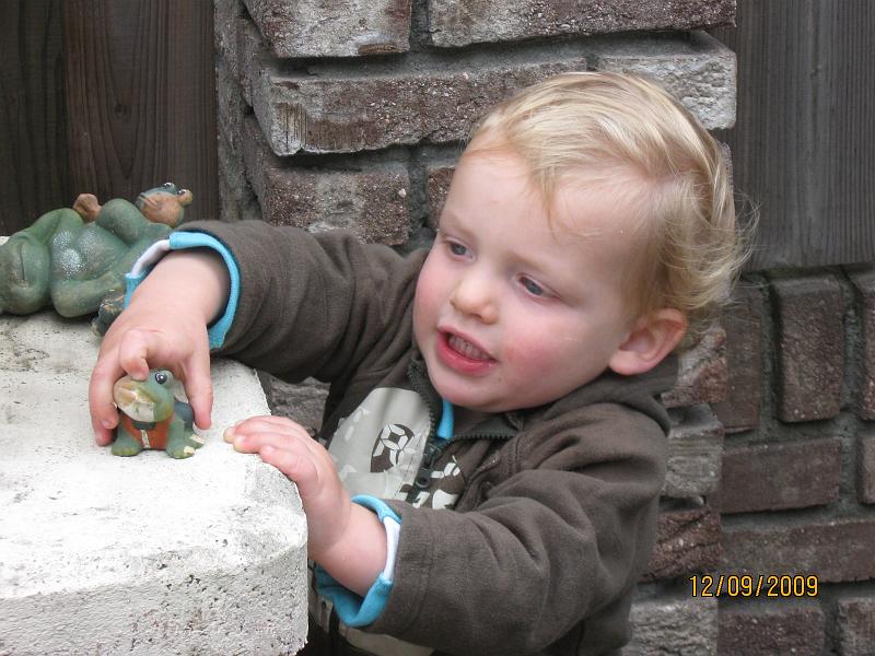 Playing with the frogs.