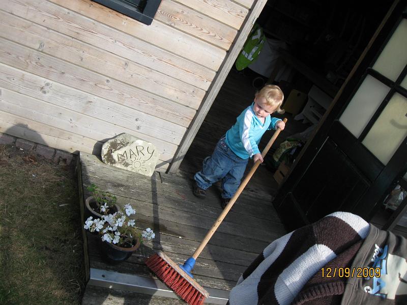 Sweeping. Liam likes to help with the chores.