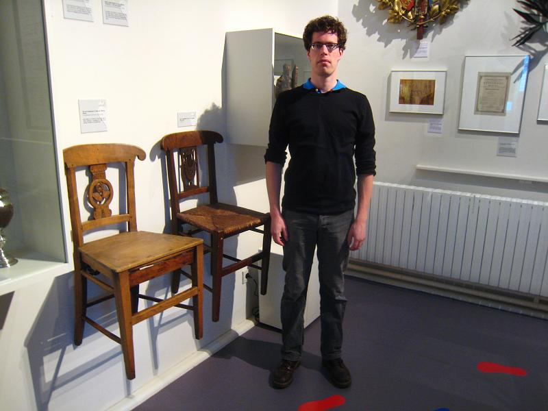 | Apparently in the old social clubs, each member had his own chair. They're quite nice, but very small (Ivo in the picture for scale). |