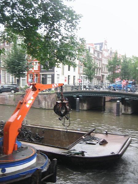 The bike boat picking up bikes from the bottom of the canal. (m)