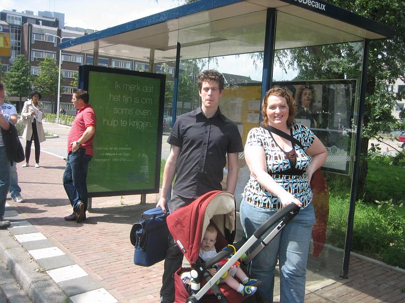 | Ivo, Liam and I awaiting the bus (the train wasn't running) to Utrecht Centraal and then the the Hague. Note our attire. It would prove inadequate. (m) |