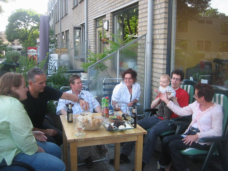 | We had Ivo's family for a birthday dinner and to meet mum. Appies on the patio with me, Ivo's uncle Joost, his dad Leo, his aunt Evian, Ivo and Liam and his mum Marijke. (m) |