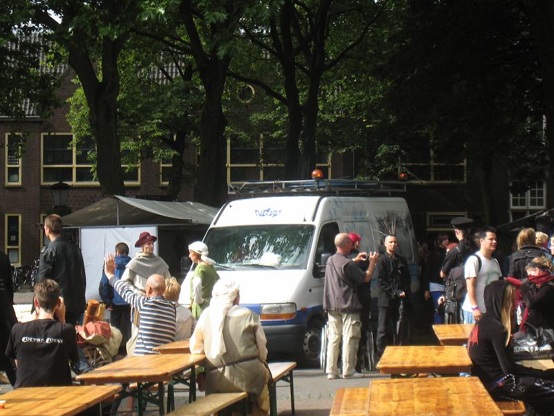 | For some unknown reason these three medievalists showed up for the Goth festival. Not sure why, but the groups were talking to each other like it was a planned thing. |