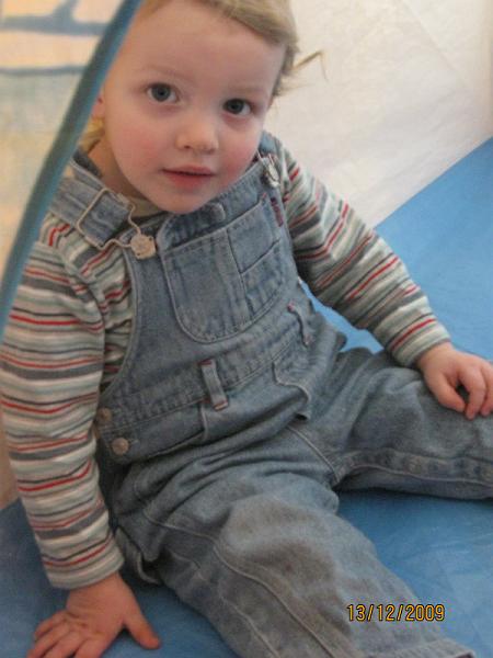 Liam in the tent.