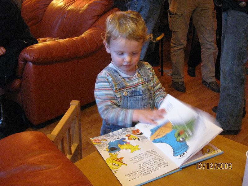 Reading one of his (old) books. This is kinda funny, since it's translated in Dutch and has the American characters, like yellow Big Bird instead of the blue big bird called Pino who's in the Dutch version.