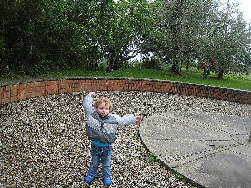 He's throwing the stones over his shoulder. Not coding in semaphore.