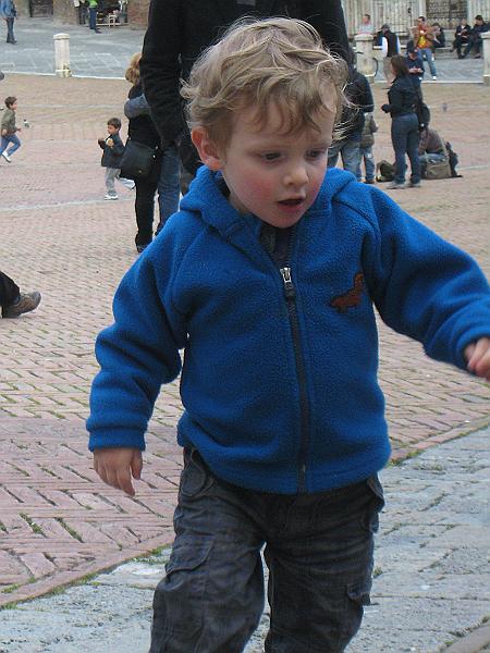Liam just raced around chasing pigeons.