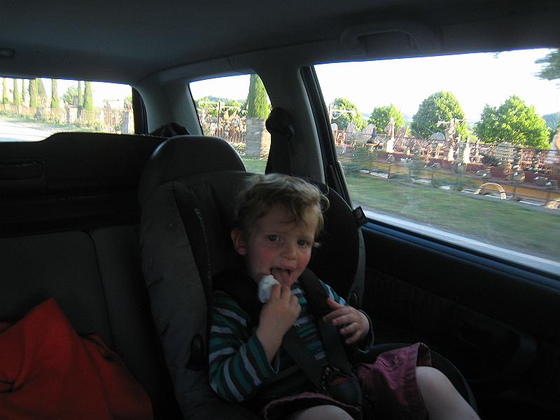 | I turned around to try and get a picture of all the statues in a garden statuary place we were plassing and caught him cleaning his tongue with the wet wipe. Bleck. |