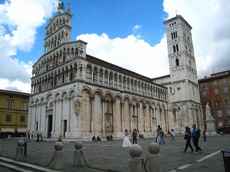Lucca cathedral, complete with bride and groom doing a photo shoot.