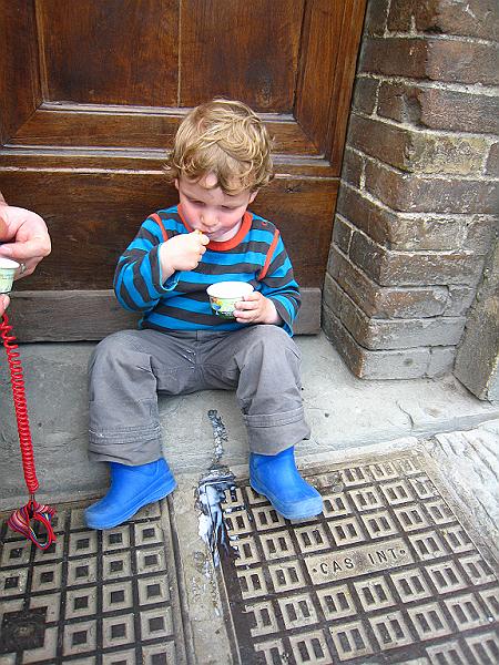 | Liam is very intent on his gelato, from an apparently world champion gelato shop on the main square. It was good. But I didn't have bad gelato in Italy. |