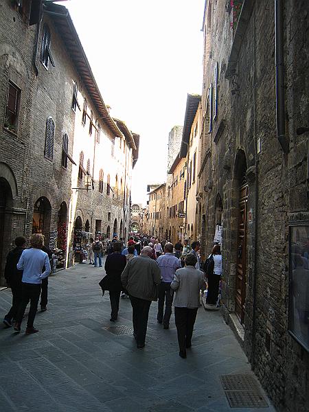 | The tourist road, full of shops selling tacky tourist crap - a little more tasteful than Pisa, but same idea. |