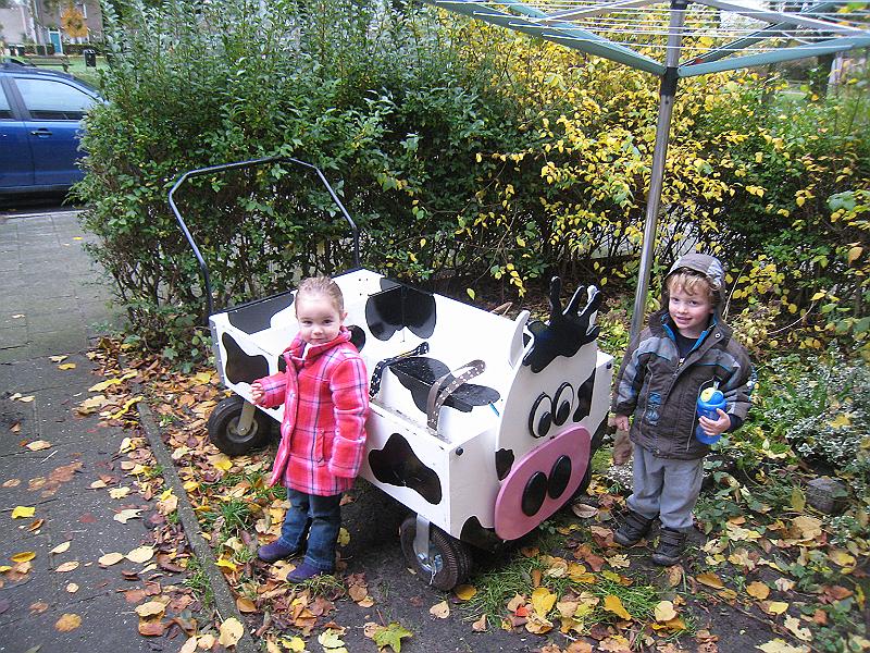 | Liam with Alba, the babysitter's daughter - and the cow wagon. The two are good friends, and seem to be making up their own language together. | 11/4/10 11:21 AM |