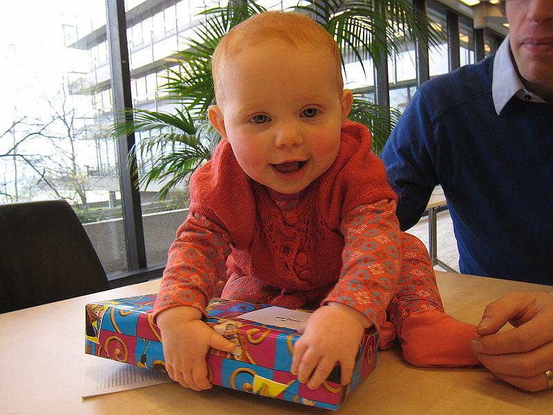 Kaya opening her present.