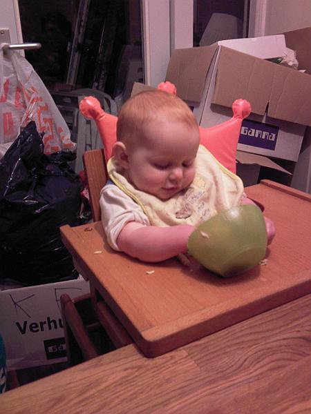 Kaya likes her food. She eats almost anything with enthusiasm - the only thing we've found that she doesn't like is mustard. She'll even eat things you could swear wouldn't be possible with 5 going on 6 teeth, like (homemade) pizza.