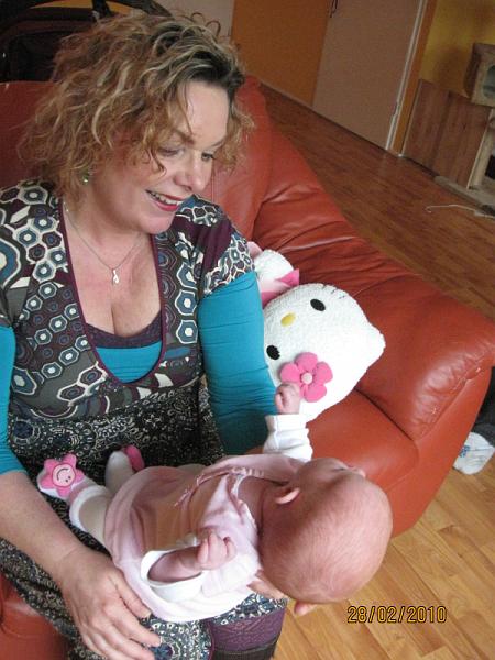 | Meeting Great Aunt Evian (great aunt sounds so much better than the Dutch version - in Dutch it's oud tante (old aunt)). (Marijke photo) |