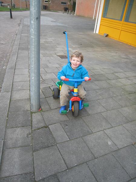 | Going for a ride on his new-to-him tricycle. |