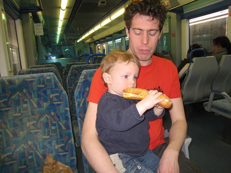 | He also insisted on eating Ivo's sandwich on the train out to the beach. |