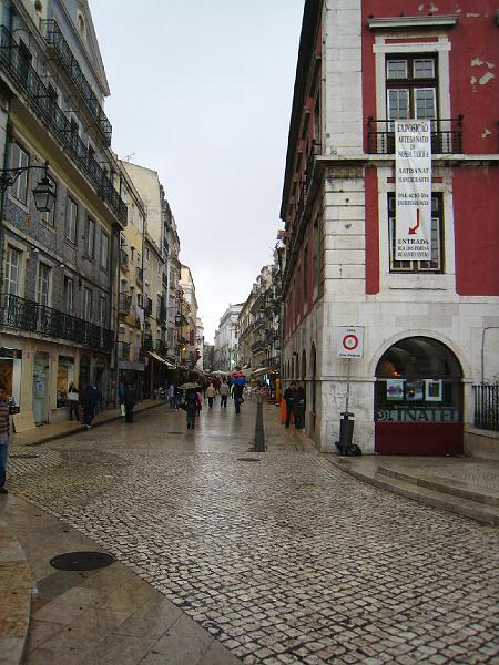 Just before the rain - a street of restaurants where the waiters come out to hawk the place to every passing tourist (and here, like much of the world, a tall (for Portugal) redhead with a blond son is definitely a tourist - Ivo doesn't look Portuguese but with sunglasses on at least his dark hair gives him some cover).