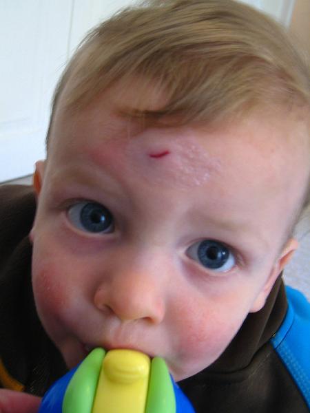 The reason for the hospital visit - Liam fell and cut his forehead open on a sharp thing we hadn't noticed in the apartment and we went to the hospital to do something to forestall scarring. It was glued.