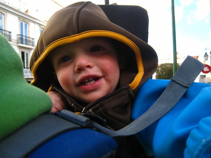 | Liam enjoying being in the back carrier. |