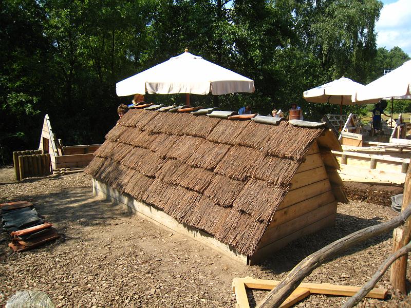 Replica of plaggenhut - a small half-underground house built by poor workers in the poorest parts of the Netherlands, especially peat lands. There the unwritten rule was that the new house could stay if it was built between sundown and sunrise and there was smoke coming out of the chimney in the morning. These particular houses are a kids' activity - how fast can they build the roof?