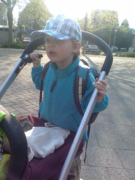Liam riding to playschool - so grown up now. Of course, he wanted to bring his rock.