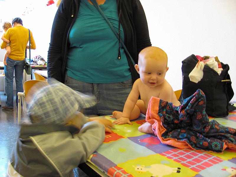 Mum also got to come with us to the consultatiebureau (or, as it's nicknamed, the consternatiebureau (consternation office) since they almost always think the kid should have grown less or more than it has). Lots of smiling and nodding goes on (Mum photo). | 8/18/10 10:23 AM