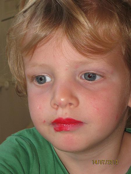 | Trying on Oma's lipstick. | 7/14/10 9:25 AM |